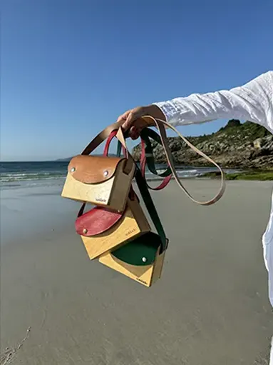 Descubre nuestra colección de bolsos hechos a mano con madera y cuero de Galicia. Cada pieza se crea con mimo, cuidando cada detalle para ofrecerte un accesorio único, pensado para durar y adaptarse a ti.