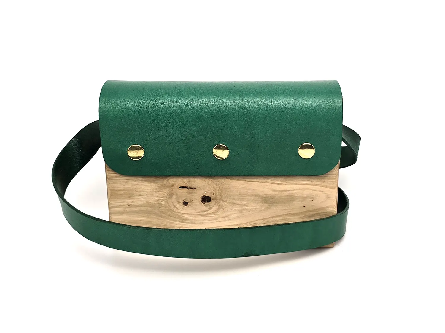 - Base: madera de castaño gallego tratada con barnices al agua. Cada veta es distinta: tu bolso será siempre único.